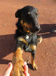 Jean Marc est enregistré dans le mobile de l’asso à « chien Salagou », des libellés comme celui-là nous en avons beaucoup. Ce n’est pas un inconnu, il nous avait déjà contacté pour un Griffon errant que des Belges en camping-car avait nourri, le monsieur devait le ramener avec lui en Belgique mais il était soudainement décédé. Nous avions alors pris en charge Napoléon à qui nous avions trouvé une nouvelle famille. Jean Marc vient chaque année se poser quelques semaines par ici. Il a une maison mais son truc c’est de prendre la route avec sa petite chienne quasi aveugle. Cette fois ci c’est sur le parking d’une grande surface de Bédarieux qu’il a trouvé ce grand Beauceron en faisant ses courses avant de redescendre sur le Salagou avec lui. Il a bien été chez le véto le chien n’était pas identifié, il a prévenu la PM pas très aimable sur Bédarieux, la mairie qui s’en fichait un peu, bref il a fini par nous appeler alors nous avions diffusé la bouille d’Aldo sur notre page. La fourrière était prévenue . De fil en aiguille Jean-Marc a accepté de le garder en FA, le temps de retrouver ses maîtres qui bien entendu ne se sont jamais manifestés.