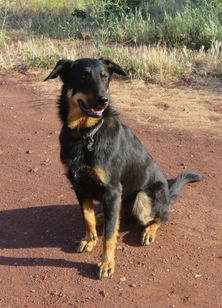 Hier soir sur la D4 quelques kilomètres après le pont de St Étienne, au milieu de la route et bien entendu au détour d’un virage, il y avait un Beauceron avec un autre chien qui suivait. Je me suis arrêtée et quand j’ai ouvert ma portière, il est venu vers moi, mais l'autre est parti dans les bois : ouf sur son collier une médaille avec un numéro de téléphone. Au bout du fil un homme ému et anxieux dont le chien était parti avec celui de jeunes qui campent au bord de l’Hérault.