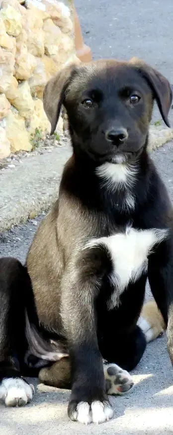 Nous sommes 4 ! Quatre chiots issus de la portée d’une chienne appartenant à des maîtres irresponsables.