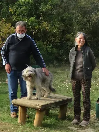 "Bonjour et bonne année à vous tous. (...) Nos deux toutous Cookie et Nisco se portent bien et les photos parlent d'elles mêmes je pense ! Cookie s'est très bien adaptée à nos lieux de vie même si par moments elle "rechigne" un peu envers les étrangers mais nous n'y portons pas trop d'attention et la maison est archi bien gardée...Pas trop réticente aux sorties en campagne par contre ... avec Nisco ils se font la paire, elle ne savait que gambader mais maintenant elle court à ses côtés. Cet été nous l'avons un peu tondue et cela lui donne un autre look mais elle apprécie quand même ; elle avait si chaud avec cette canicule ! Enfin pour un chien rustique elle aime bien le confort elle aussi ! On vous souhaite d'avoir cette année encore beaucoup de placements de chiens (qui sont de plus en plus beaux) car vous le méritez bien et on vous félicite encore pour tout votre dévouement. Pour nous tout va bien ; (...) En espérant que mes photos vous plairont nous vous envoyons toute notre affection. Gervaise et Norbert"