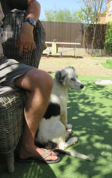 Olivier et ses grands enfants sont venus rencontrer la fratrie et c'est le petit Enzo qui a fait l'unanimité. Alors passé un temps de réflexion indispensable avant d'adopter un chien, nous avons amené le petitou dans sa nouvelle famille. Une grande copine l'attendait...Alors petit récap pour les présentations entre un chiot et un chien adulte : on ne balance pas le chiot dans le jardin sous prétexte que c'est un BB et que ça va bien se passer. Il est petit, l'autre chien est grand, ils ne se connaissent pas. Quand en plus il s'agit, comme là, d'une chienne jeune, vive et joueuse qui va lui foncer dessus, il y a de fortes chances pour qu'il soit terrorisé! Des présentations à travers la porte du jardin histoire de se renifler c'est un bon début pour faire retomber l'excitation de la rencontre avec le nouveau venu :) Ensuite ne jamais laisser le chiot se faire courser par l'autre chien, de même il faut qu'il puisse s'abriter dans vos jambes ou sous une table si il a peur, à l'abri du monstre :). Ensuite et seulement quand l'excitation retombe, on peut les laisser interagir, tout en surveillant pour que le petit reste confortable. Quand c'est lui qui va voir ce que fait le grand, quand il l'observe à la dérobée, quand il va boire après lui pour faire pareil...c'est gagné! Une rencontre entre deux chiens c'est beaucoup d'émotions, pour l'un comme pour l'autre, alors il faut laisser à chacun le temps de s'habituer à l'autre. Ces deux là deviendront vite des copains et pas sûr que le "chef" soit le plus grand des deux :)))) Un grand merci à Olivier et sa famille qui offrent à Enzo une nouvelle vie.