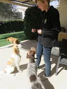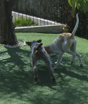 Floki n’a pas été dépaysé puisqu’il connaissait déjà Victoire, sa maison et surtout ses deux chiens. Ah oui parce que Pita est la grande copine de Floki, un Korthal, autrement dit un griffon, comme lui. Ils ont le même âge et jouent à n’en plus finir. Falco, le papy, est quelquefois de la partie, mais il est plus calme.