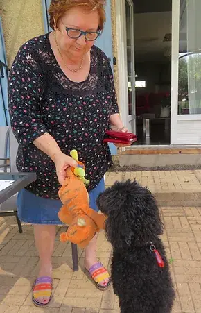 Sa maîtresse âgée et malade ne pouvant plus s'en occuper, nous avons accueilli Gaëlle. Quel joli nom pour cette adorable petite chienne qui a été aimée et choyée toute sa vie. C'est avec toutes ses affaires, c'est à dire une montagne de peluches, ses manteaux et sa trousse de toilette que la demoiselle a rejoint l'association! Si, si, sa trousse de toilette avec ses parfums, son shampoing et sa brosse à dents. Il faut dire que Gaëlle est un chien de race, un vrai : un Caniche. Pour ceux qui connaissent la race, vous savez que les caniche sont particulièrement intelligents, certains disent même que c'est le chien le plus intelligent au monde. L’autre caractéristique majeure du Caniche c’est sa capacité d’adaptation. Il s’accommode à merveille à toutes les situations. Sa nature joyeuse en fait un excellent compagnon de jeux. Plein de vie, il adore l’exercice et se fera une joie d’accompagner les sportifs durant leur footing...Gaëlle est vraiment comme ça :) C'est une petite chienne vive et joyeuse qui pourra vous accompagner vraiment partout, elle est adorable en voiture et se roule en boule prés de vous. Elle sait rester seule et s'entend aussi bien avec les autres chiens qu'avec les chats. Pour notre petite perle, sensible et si proche des humains, nous recherchons une famille avec de la présence et de belles balades. Ne vous fiez pas à son âge, un caniche peut vivre jusqu'à 16 ou 18 ans....