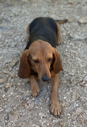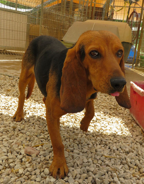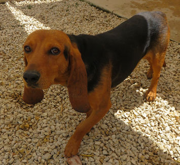 C'est un Bruno du Jura qui errait dans le quartier d’une petite ville depuis Février 2022...On l'entendait arriver de loin car sur son collier, bien serré, une cloche l'annonçait comme les lépreux au moyen âge. Les habitants de ce lotissement calme et tranquille ne supportaient plus cette cloche qui résonnait en pleine nuit. Peureux, inapprochable, il sortait plutôt la nuit. Pendant plusieurs mois certains habitants, émus par son triste sort, lui ont laissé à manger et à boire : le chien squelettique à son arrivée est devenu tout rond :) Heureusement il y a encore des humains avec du cœur. Quand Natacha qui habite ce quartier nous a appelées dans le courant de l'été nous avons promis de l'aider, nous avons mis en place une stratégie, le même jour, la police municipale nous a aussi contactées parce que les gens se plaignaient de la présence du chien. C’est une longue histoire mais nous avons réussi à le capturer.