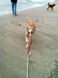 En balade Gus n'est jamais loin de vous, se retournant pour s'assurer que vous êtes bien là. Avec un excellent rappel, les promenades sont un plaisir et s’il croise un copain à 4 pattes, ils jouent comme des fous à se courir après dans les ruisseaux, dans les champs...Ils ont du mal à se séparer au moment de rentrer, exactement comme des enfants.
