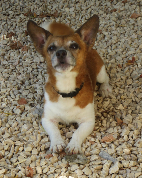 Avec ses grandes oreilles il a de faux airs de Corgi mais le véto l'a enregistré en Jac Russel, mais lui n'est pas aboyeur du tout.