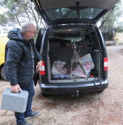 Le temps de faire les papiers, Hector avait déjà sauté dans le coffre de la voiture avant même que la plage arrière soit enlevée! Confortablement installé, il a refusé de descendre.