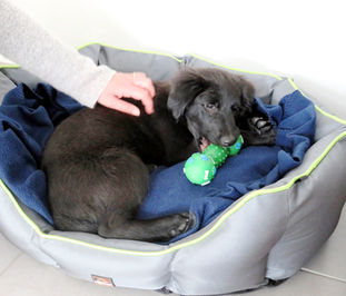 Parce qu'elle était en appartement avec donc la nécessité d'être sortie, Jenny avait déjà l'habitude de l'ascenseur, des voitures et du harnais pour la balade. Une petite chienne bien socialisée, le bonheur avec un chiot, ce fut une bonne surprise.