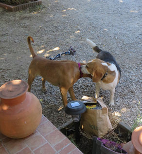 Nous avons eu beaucoup de demandes pour la belle Joy... Il fallait bien choisir une famille, alors nous avons choisi celle qui nous semblait correspondre le plus aux besoins de Joy. D'abord il y a un autre chien, du même âge ou presque, sociable et joueur. Et puis dans cette maison il y a aussi un lapin, auquel le Beagle ne s'intéresse absolument pas, de quoi balayer les idées reçues sur les chiens de chasse puisqu'ils cohabitent! Les enfants sont grands, ils ne vont ni harceler ni exciter Joy avec d’interminables séances d'ordres de base envoyés dans tous les sens, ce qui est épuisant à vivre pour un chien au quotidien : ce n'est pas un jouet. La rencontre avec son futur meilleur ami s'est bien passée, ils ont rapidement commencé à jouer, ce qui n'est pas toujours le cas et se sont échangé les nouveaux jouets, pour sûr que c'est elle qui mènera la danse. Joy a eu peur du lapin bien à l'abri dans son clapier, cette bestiole l'intrigue, à surveiller tout de même car un lapin pour un chien, c'est comme une souris pour un chat, faut pas pousser! Tout le monde était heureux de son arrivée, cela se voit sur leurs visages. Nous avons reçu plus tard un petit message : (...) Je pense que tout le monde vous le dit mais nous sommes ravis, nous prendrons soin d'elle, elle vient compléter notre famille (...)" Même si on nous le dit souvent en effet, cela fait toujours plaisir de l'entendre ou de le lire. Et puis "Elle vient compléter notre famille" c'est joliment dit on sait que notre Joy est au bon endroit :) Un grand merci à Céline et sa famille qui offrent