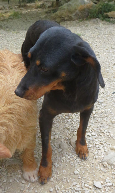 C'est un monsieur qui nous a contactées pour ce petit chien qui errait sur la propriété dont il est le gardien. Lui même a déjà deux chiens plus un chat ,et si Léo venait les voir tous les jours pour jouer, il en profitait pour chiper tout ce qui trainait. Un pull oublié sur un transat, une chaussure, un vrai collectionneur. Il a fait le tour du village, personne ne le connaissait. Voilà comment Léo nous a rejoint. C'est un petit chien drôle et affectueux qui en effet est très joueur avec les autres chiens, plus facilement avec les femelles qu'avec les mâles Il st bien installé avec Candy, d'ailleurs ils dorment ensemble, couchés l'un contre l'autre, c'est trop mignon. Si vous avez déjà un chien il en sera très heureux. Léo est un petit gabarit mais les promenades ne lui font pas peur au contraire, les rando pourraient même bien lui plaire. Il a de petites pattes mais Léo est rapide!