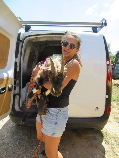 Nous avons donc lancé un appel pour une famille d'accueil le temps pour nous de lui trouver une famille définitive et Manon nous a contactées. Elle a des chevaux, des poules et déjà deux petits boucs! La petite famille est sur une grande parcelle avec des vignes autour, un petit paradis.