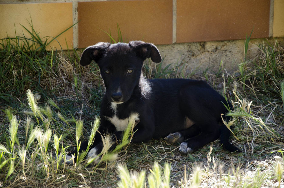 Cette petite puce est âgée de 2,5 mois et sa maman est un croisé de berger de petit gabarit.