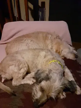 Elles vivent en permanence avec moi, se blottissant dans le canapé où je dois souvent les pousser pour faire ma place, elles finissent sur moi, pour Olly, ça peut aller, mais Lucy n'a pas conscience de son "petit" gabarit. Les léchouilles affectueuses font que je leur pardonne volontiers et puis… en cette saison, elles me tiennent chaud.