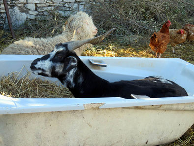 Elle a ainsi recueilli des chevaux, un âne, des poules, des moutons, des chèvres, et bien entendu ses trois autres chiens sont aussi des sauvetages.