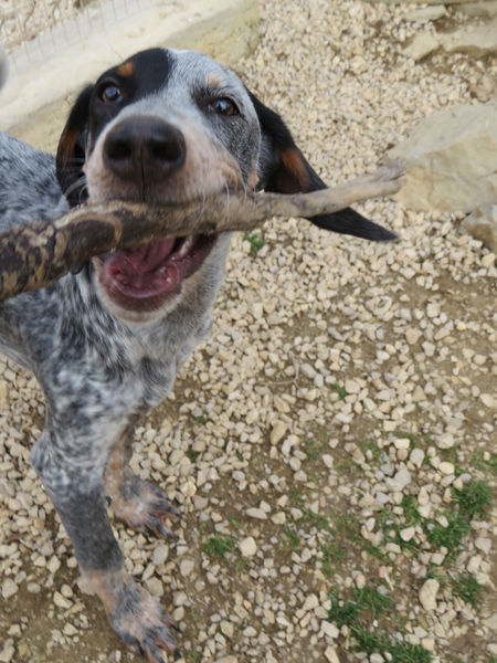 C'est une ado qui nous a appelé pour nous demander de venir chercher son chiot. Son père le lui avait offert pour Noël, il avait 2 mois. Il fait des bêtises, pipi etc…des trucs de chiot et cela pose problème. Nous avons compris que c’était urgent, pour le chiot surtout, parce que tout le monde s’en fout. A commencer par les parents qui n'ont même pas pris la peine de nous appeler, et encore moins de nous rencontrer. Marley n’était pas identifié, pas vacciné, il n’avait jamais été vermifugé : en clair il n’a jamais vu un véto. On l’a embarqué avec ses 2 peluches et son panier trop petit. En 2023 il y a encore des parents qui offrent un chiot à leurs enfants, comme si c’était un objet. Des parents qui laissent leur ado s’en charger comme si elle refourguait ses cartes Pokemon ! Depuis Marley a pris ses marques chez Fanny sa famille d'accueil avec Lasco son chien, des chats et des chevaux, c'est un gros BB; pour lui tous ces copains c'est comme une colo! Un autre chien avec qui s"amuser c'est le bonheur. Nous sommes voisins de champs avec Fanny la famille d’accueil de Marley alors nous le voyons régulièrement. Notre bout de chou est toujours aussi câlinou, il dort sur le lit de Fanny qui n’a pas eu le cœur de lui dire non. Il s’entend avec tous les chiens, il adore les enfants, et bien entendu les balades. C’est un chien de pleine nature, taillé pour le canicross et en plus il a un super rappel. Heureux de vivre, de jouer, de courir, de se laisser gratouiller, Marley est un bébé dont la joie de vivre est communicative. Un chien qui, en plus, sourit, ce n’est pas banal… Il observe énormément les choses et les gens. C'est un petit bout sensible qui restera dans son coin si il sent qu'il n'est pas le bienvenu, à l'inverse il viendra se coller tout contre vous parce qu'l aime les humains, petits et grands. Ce jeune chien est surprenant d'adaptation, il est intelligent et comprend vite les choses. Pour un chiot c'est à souligner. Doux, attachant, curieux, Marley est un vrai petit cœur sur pattes! Un loulou adorable qui fera fera le bonheur d'une famille avec ou sans enfants.