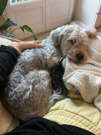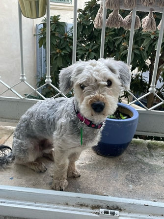 En promenade c’est un amour aussi. Il est extrêmement curieux. Il est sociable avec les autres chiens, adore aller leur dire bonjour. Il peut être un peu impressionné face au monde dans la rue, mais c’est parce qu' il est très stimulé et qu’il ne sait plus où donner de la tête.