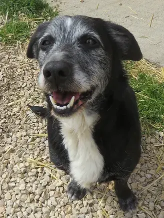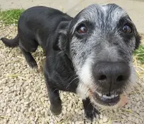 C'est un petit chien dont on ne savait rien en le récupérant à la fourrière... et quand nous l'avons vu on a cru que c'était un petit papy! Sauf que pas du tout, si Milou a une tête de vieux chien, il n'est pas vieux du tout, au contraire! Ces poils gris sur sa frimousse lui donnent un air particulier, c'est vrai, pour en pas dire un charme certain. C'est une jolie couleur, alors que son corps est noir! Ce petit chien ne ressemble à personne, on dirait un Labrador mais il fait la taille d'un basset! Le vétérinaire a indiqué "Épagneul croisé Teckel"...Milou est donc un petit gabarit, il est gentil, affectueux et sociable avec les autres chiens. Il partage le quotidien de Caramel notre vieille Fauve caractérielle, c'est vous dire si il est de bonne composition! Il a tout de suite trouvé ses marques avec elle, allant jusqu’à partager le même bain de soleil, voire échanger leurs croquettes. Milou est un petit bout de chien doux et attachant, une famille avec, ou sans enfants; respectueux des animaux, fera son bonheur. Il pourra vous accompagner partout, Milou est discret, il a besoin d'être en confiance pour se sentir à l'aise avec vous, mais une fois qu'il vous connait, il se montre câlin, gai et joueur!