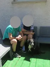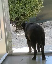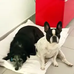 Nous étions un peu inquiètes en amenant Milou dans sa nouvelle famille car Gala, la petite bouli de la maison ne sait pas bien se présenter aux autres chiens...en fait elle leur fonce dessus! Sans rien leur faire, mais quand même. Milou était un peu inquiet en arrivant : c'est bien normal quand on change d'environnement, alors cet accueil un peu brusque l'a surpris. Après une courte balade histoire de faire connaissance, nous sommes entrées dans le jardin où Milou a tout de suite repéré la petite piscine installée à son attention. Il a compris qu'il y serait au frais mais aussi que Gala n'était pas à l'aise avec l'eau! Elle tournait autour mais il était en sécurité! Milou a fini par en sortir mais Gala lui barrait le passage à chaque pas. Il a fallu un petit peu de temps pour qu'elle le laisse se poser au frais dans la maison sur le carrelage, même si elle n'était pas loin : on ne sait jamais! Depuis, ces deux là sont devenus de vrais amis, finalement ils se complètent parfaitement. Gala a désormais un copain, elle apprend à partager, quant à Milou, il la laisse faire, il attend son tour! Chacun a trouvé sa place, bien sûr il y aura de petits ajustements, selon la situation, exactement comme il peut y en avoir dans un couple! Merci aux adoptantes pour la nouvelle vie qu’elles offrent à Milou qui devient Dobby.