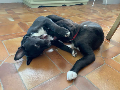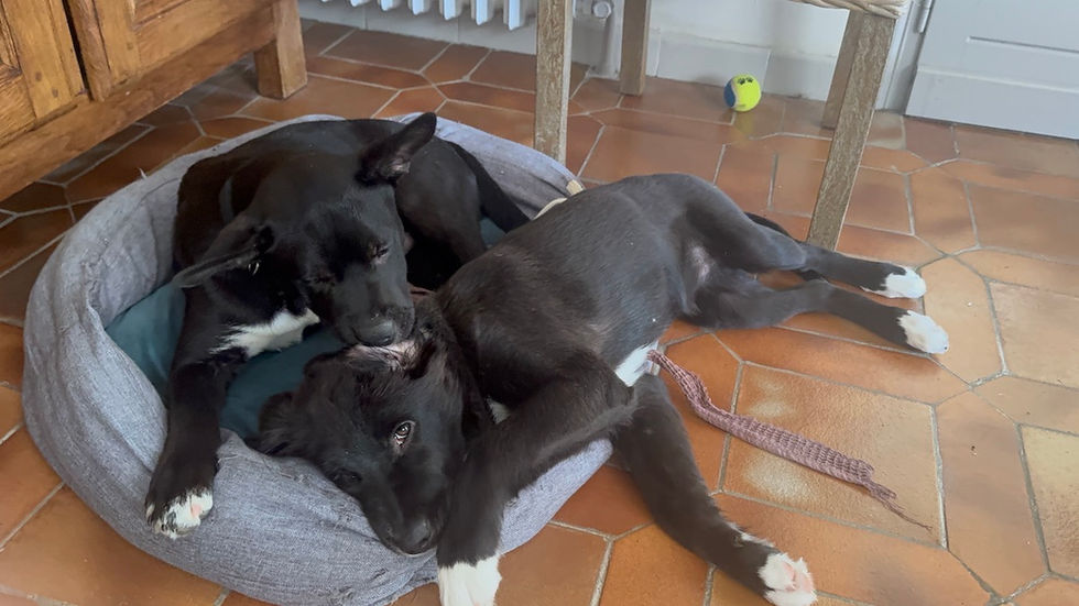 Ce n'est pas tous les jours que nous avons une demande sérieuse et adaptée pour adopter deux chiots en même temps. Dominique et son mari sont retraités; ils vivent prés de leurs enfants et petits enfants. La maison est grande, le jardin immense et surtout ils ont de la patience et du temps. Ils savent que deux chiots en même temps ce sera deux fois plus de travail, mais c'est tellement gai de les voir grandir et jouer ensemble. Milou et Kissoa ne sont pas réellement frère et sœur mais ils le sont "de cœur", ils étaient ensemble en famille d'accueil chez Carole, donc ils se connaissent et ne seront pas séparés :)
