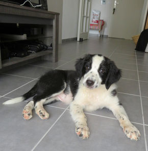 Toujours aussi mignonne, gentille, joueuse et agréable à vivre. Très expressive, elle sait très bien se faire comprendre, que ce soit pour les câlins, le jeu, les sorties. Un véritable instinct de chasseur lorsqu’elle est de sortie, une vraie joueuse quand nous sommes avec elle dehors, et un vrai chien de canapé le soir devant la télé. Elle s’amuse toujours autant avec ses congénères qu'elle côtoie régulièrement au sein de la caserne, au centre équestre ou au cours des promenades lorsque nous croisons les habitués. Niveau éducation, nous travaillons toujours avec Marion. Un vrai bonheur pour nous tous. Nous passons de bons moments. Un vrai plaisir et un véritable amour de chien. J’ai toujours adoré les chiens, caressé bon nombre d’entre eux, mais j’ignorais qu’un animal pouvait être autant expressif tant par ses yeux que ses expressions et sa manière d’agir en général. Un vrai bonheur. Merci de nous avoir permis de vivre ces moments avec notre boule de poils. À bientôt. Amitiés. » Laurent