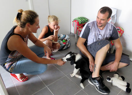 P.S. : « Bonjour, Des nouvelles de Naïa qui est malheureuse et s'ennuie énormément .... Je rigole ! Naïa s'adapte bien, profite bien. Tout se passe à merveille pour tous les 4, que du bonheur ! Elle joue, dort, joue, dort. Une vraie petite pile, rien à voir avec la petite boule "orange" que nous avions vu chez Mylène. Elle grandit à une vitesse folle. Elle adore les balades, courir, jouer et voir ses copains chiens. Elle a du mal avec la chaleur et préfère les promenades matinales ou tard le soir. Elle a rencontré Câline la jument et les autres chevaux ... Impressionnant, Lol ! Nous sommes partis à la Salvetat-sur-Agout. Le trajet en voiture se passe très bien. Nous avons essayé la baignade en rivière et à la plage. Elle aime bien avoir les pattes dans l'eau mais la nage ça ne sera pas pour tout de suite, par contre elle adore le sable de la plage. Nous sommes tous les 4 heureux (Delphine, Elysa, Naïa et moi-même) À bientôt !! »