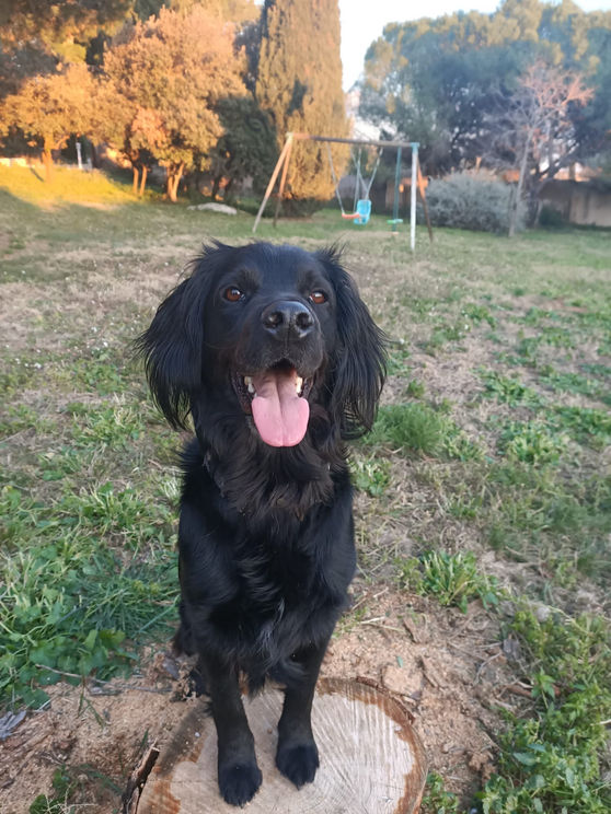 Nesquick est un mélange parfait de Labrador et de Cocker, ce n'est pas un gros gabarit. Voilà un chien que vous pourrez faire suivre partout, d'abord parce qu'il est bien élevé ensuite parce que sa taille moyenne le permet. Il est joueur que ce soit pour courir après un ballon ou s'amuser avec ses copains. En fait c'est encore un chiot. Nesquick s'entend avec les autres chiens, comme avec les chats. Bien entendu il aime les humains petits et grands, il serait même un brin pot de colle. D'ailleurs il n'est jamais loin de vous. Il est intelligent et comprend vite ce que l'on attend de lui mais comme tous les chiens intelligents Nesquick est aussi un tantinet cabot ce qui veut dire qu'il peut lui arriver de n'en faire qu'à sa tête...C'est un compagnon joyeux et sportif qui vous accompagner volontiers en rando mais c'est aussi un poilu qui apprécie le canapé et la chaleur de sa couette. Nesquick connait la vie de famille, il est installé en FA chez Adrian et sa fille avec toute la tribu animaux de la maison! Il s'est rapidement et parfaitement intégré comme il le fera avec, et chez, vous.