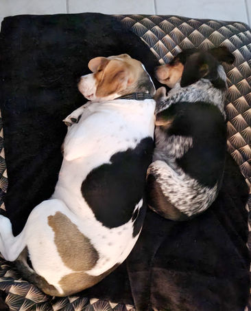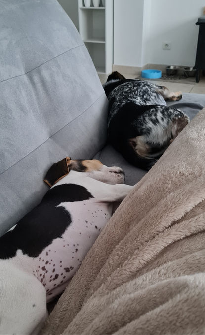 "(...) J'ai adopté Plume le 28 février 2019, cette date restera gravée à jamais dans ma mémoire, car c'était la veille de mon anniversaire et l'un des plus beaux jours de ma vie ! Merci de m'avoir fait confiance et de m'avoir permis d'adopter ma fifille, avec qui j'ai une grosse complicité et que je prends partout où je vais ! Cette fifille revient de loin, et maintenant elle n'a plus peur de rien ! Je vous présente également la nouvelle copine de Plume, une jeune Beagle avec qui tous se passe à merveille ! Évidemment Plume lui montre bien que c'est elle la cheffe ! Bref, Plume est devenue une chienne plus que parfaite !