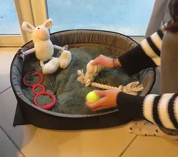 Et voilà, notre petit poilu a une famille, une grande famille même! Pollux n'en menait pas large sur le trajet en voiture, mais une fois sur place il était tout à fait à son aise, il a fait le tour du jardin mais aussi du potager qui sera clôturé pour ne pas arroser les salades :). Ensuite, à peine impressionné par les membres de la famille qu'il ne connaissait pas, il a dit bonjour à tout le monde. Rapidement il a joué à la balle, il s'avère que c'est un bon receveur, en plus il ramène la balle alors c'est un plaisir de la lui lancer! Pollux va être très heureux dans cette famille où il y aura presque toujours un humain pour lui tenir compagnie et même une copine, bien plus grande que lui : une jolie Border avec qui il a déjà commencé à jouer. Il sera rarement seul et souvent dans le jardin. de belles balades sont prévues sans compter qu'il pourra peut être accompagner son maître à la vigne...Joli programme pour notre adorable petitou. Un grand merci à Isabelle et Stéphane qui offrent à Pollux une nouvelle vie.