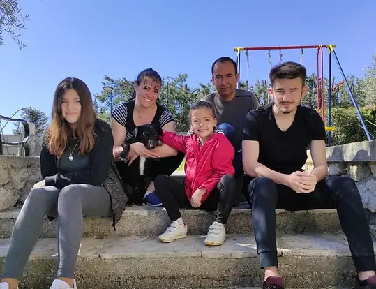 "(...) Voici quelques photos pour vous donner des nouvelles de notre petit amour de Pollux. Il nous comble de joie et d'amour chaque jour. Depuis son arrivée dans notre foyer, Pollux s'est merveilleusement bien adapté. Il est très sage affectueux et obéissant ( sauf en promenade lorsqu'il croise d'autres chiens lol, mais pour nous cela n'est devenu qu'un détail et nous nous y sommes adaptés ) A la maison il n'est jamais seul, il promène chaque jour et accompagne même souvent son maître à la vigne où il se régale de courrir à travers les rangées. Il nous accompagne aussi très souvent lorsque nous faisons des sorties en randonnée en famille. Bref.... Tout cela pour vous dire que nous sommes très heureux ♥️ Isabelle et Stéphane."