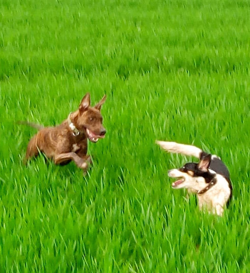 « Bonjour Apavh, Déjà un an que nous avons Nala, comme elle a changée, elle a beaucoup évolué et je pense qu'aujourd’hui elle est bien dans ses coussinets.Quelques photos avec Linka, la chienne de ma mère, dans les blés…Bien cordialement »Hélène