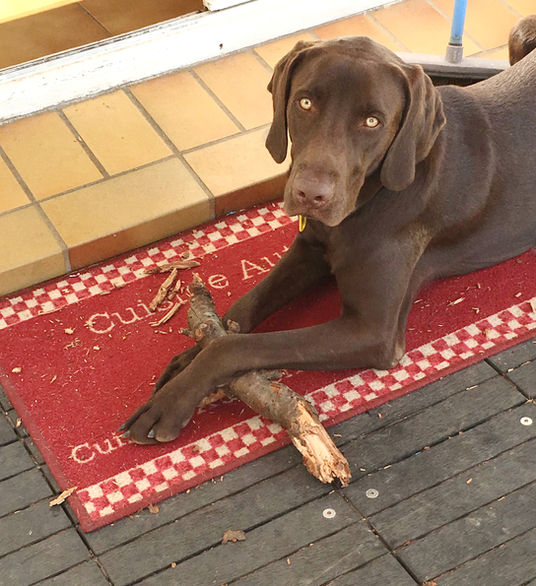 Avec Pipo, le gentil et amical griffon de la maison, tout s’est bien passé. Toby a bien tenté d’inviter notre placide pépère au jeu mais en vain pourtant ce n’est pas faute d’y avoir mis du sien. Du haut de ses huit ans, Pipo a trouvé ce jeunot beaucoup trop remuant à son goût le regardant s'agiter d’un air blasé.
