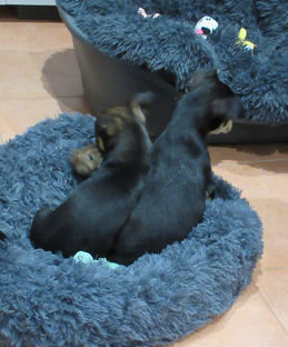 Myriam avait tout prévu, un grand manier pour dormir ensemble et deux petits paniers pour que chacun ait un dodo pour s'isoler. De nombreux jouets à partager. Si elle travaille encore son mari est jeune retraité alors Tom et Jerry ne seront jamais seuls et puis il y a les enfants, proches, qui ont eux aussi des chiens, autrement dit de futurs copains.