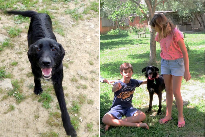 La chienne au regard tristounet que nous leur avions confié a bien changé, ses yeux pétillent de joie maintenant.