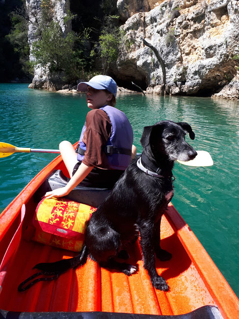 « Tosca est le bébé de la famille qui ravit tout le monde. Nous l’emmenons partout avec nous : randonnées, courses à pied, vélo, bateau, canoë, télécabine à la neige, voiture, bref elle fait partie de nous.