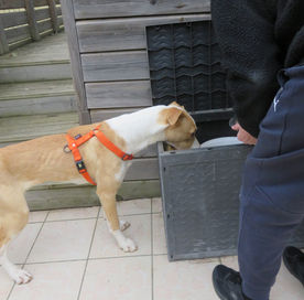 Par son propriétaire nous savions qu’Ursula vivait en appartement avec des chats... c'est son emploi du temps chargé qui l'a contraint à se séparer de sa chienne en espérant pour elle une vie meilleure...