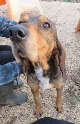 Ok on vous l'accorde, on ne s'est pas foulées pour lui trouver un nom et en même temps ça lui va tellement bien! Bruno, donc, errait dans le haut d'un village depuis plusieurs semaines. Certains habitants le nourrissaient et il revenait tous les jours chercher son repas. Pour autant il était impossible de l’attraper. Nous avons installé notre cage piège à l'abri des regards parmi les oliviers, Bruno a pris l'habitude d'y entrer et d'en sortir et quand nous avons été certaines qu'il rentrait jusqu'au bout, nous avons mis le piège en action et clac! Un Bruno, un! Non identifié et encore moins recherché, Bruno est venu s'ajouter à notre longue liste de Grandes Zoreilles :18 précisément à ce jour, quand on aime on ne compte pas! Et nous les chiens dits "de chasse" on les aime parce que nous savons que ce sont les chiens de compagnie les plus adorables et les plus attachants. Les oreilles de Bruno ont une particularité, elles battent tous les autres Grandes Zoreilles : elles peuvent tenir à l'horizontale. Comme ses congénères, Bruno aime les humains petits et grands, il s'entend avec les autres chiens, c'est un amour de poilu! Gentil affectueux et pot de colle : il ne vous lâche pas d'une semelle, une boite à câlins.....