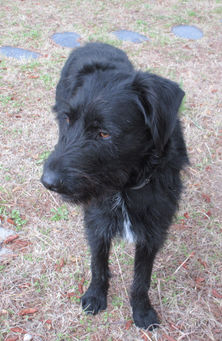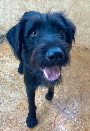 Cachou est un des trois Griffons que nous avions pris en charge au mois de Novembre. Trouvé errant avec son frère et sa sœur, il squattait le jardin, non clos, d'une famille des Hauts Cantons qui ne pouvait pas les garder. La dame avait cherché partout autour de chez elle, fait appel à la mairie qui n'avait pas de contrat fourrière, du coup personne ne voulait se déplacer. Avec l'aide de Marine nous avions pu les installer provisoirement dans un chenil en attendant d'avoir de la place pour les récupérer.