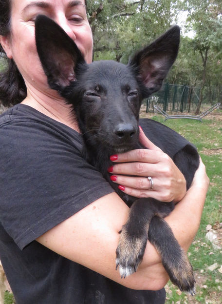 Chapi est un adorable petit pot de colle avec une bouille toute mimi, rassurez-vous ses grandes oreilles de chauve-souris ne vont pas grandir davantage :) Ce mini Berger est sensible, doux et affectueux. Comme tous les chiots, il aime les gens, les chats et les autres chiens. Il joue, il dort aussi mais de moins en moins parce qu'il grandit... enfin il dort quand il ne fait pas de bêtises. Il a une bouille d'enfer… Mais attention, c'est un être vivant, sensible, pas un jouet, et encore moins à destination des enfants. C'est un chien, ce qui impliquera de l'éducation, avec un professionnel compétent, en méthode positive pour vous aider parce que ce n'est pas aussi simple d'éduquer un chien, en grandissant il aura besoin de se dépenser, pas juste le tour du pâté de maison mais de belles balades et surtout du jeu... Il perd ses poils, il aboie, il aime déchiqueter tout ce qui l'intéresse, il griffe, il mordille, il hurle quand il est seul et qu'il a peur, il fait pipi et caca parce qu'il ne peut pas encore se retenir, il est trop petit, bref il fait des trucs de chiot ! En fait il est super cool quand il dort...Le modèle de chien déjà éduqué, qui sait rester seul, qui ne fait pas de bêtises, qui n'aboie pas, qui ne perd pas ses poils, qui fait le ménage et sert l'apéro n'existe pas ! Un chiot c'est une page blanche et cette page c'est VOUS qui la remplissez. Votre chiot deviendra le chien que vous allez en faire. S’il ne sait pas rester seul une fois adulte, c'est que VOUS n'aurez pas su le lui apprendre. S’il n'a pas de rappel une fois adulte, c'est que VOUS n'aurez pas su le lui apprendre. S’il n'est pas sociable avec les autres chiens une fois adulte, c'est que VOUS n'aurez pas su le lui apprendre etc....Alors l'abandonner une fois adulte pour une seule de ces raisons est injuste et méprisable. Si vous avez conscience de tout cela, comme tous les chiens, cette adorable boule de poils va changer votre vie pour le meilleur, inversement si vous n'êtes pas de bons maîtres ce sera pour le pire ! Le chien est un animal social et sociable, on ne le dira jamais assez. Alors il n'est pas fait pour rester seul au fond d'un jardin, ni sur un balcon. Il a besoin d'interagir avec vous et pas seulement quand vous en avez envie. Il n'y a pas de pile, ni de bouton ON et OFF. N'oubliez pas qu'un chien vit une bonne douzaine d'année et que c'est un engagement sur la durée... Quoiqu'il arrive. On peut déménager (avec son chien), partir en vacances (avec son chien), attendre un enfant (avec son chien), se séparer (un des deux gardera le chien), perdre son boulot (garder son chien) etc...Bref ce sont les choses de la vie alors pensez-y avant de prendre un chien, parce que tout cela n'a rien d'exceptionnel et pourtant ce sont les "raisons" données par ceux qui abandonnent leur chien.