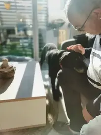 "Tout va bien, un amour de chien" "Une semaine que notre poilu nous a rejoint et nous donne beaucoup d'amour" "C'est un très gentil chien qui comprend ce qu'on lui dit, il a dû être éduqué" "Et il n'a pas peur de l'aspirateur" "C'est un amour, calme et affectueux"...