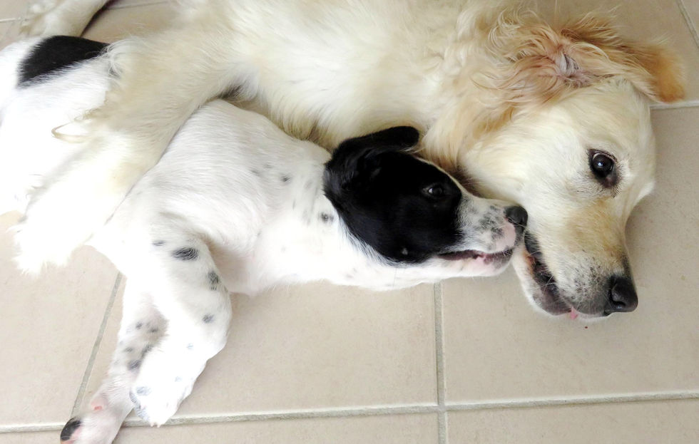 Gaston est un amour de chiot, ok un gros chiot ! Pataud, joueur, gentil et super débrouillard, ce bébé est très attachant. Il n'a peur de rien, il est curieux et intelligent, beaucoup plus téméraire que son frère Loki. Comme tous les chiots il aime les gens, les chats et les autres chiens.