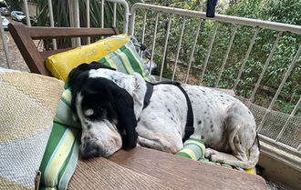 Jazz est le frère de cœur de Magouille (adopté). Nous avions récupéré les deux chiens suite au décès de leur maître chasseur, personne ne pouvait alors prendre soin d'eux. Si nous avons gardé Jazz avec nous quelques mois, nous l'avons installé depuis peu en famille d'accueil chez Anouk, Lise et Ysia, elles sont colocataires et partagent un appartement, en ville, mais avec un joli balcon qui donne sur le parc de la résidence, le tout dans un quartier tranquille.