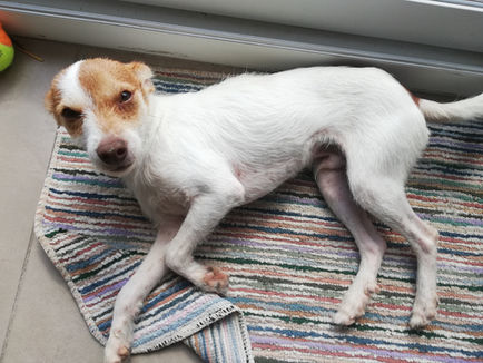 Au départ ils étaient trois. Pris en charge par la fourrière, ils étaient en hypothermie, 35 degrés pour le plus faible, couverts de puces. L'un d'entre eux n'a pas survécu bien qu'ils aient été hospitalisés chez le vétérinaire...Nous avons récupéré Léo et Nino, la fourrière hésitait à nous confier Nino car il n'était pas bien du tout et ne voulait pas nous faire faire des frais...il ne pesait que 2,3 kilos, le vétérinaire l'a mis sous perfusion 48 heures, depuis il est en FA pour de la câlinothérapie chez Cécile et François, avec eux il reprend des forces, tout doucement il s'alimente à nouveau, il a pris 200 grammes on vous tiendra au courant.... Léo lui, va très bien depuis le début, c'est un ouistiti chien, il pèse 4,3 kilos, un vrai petit bonbon, vif et joueur. Un petitou qui se cale dans vos bras ou sur vos genoux pour des bisous. Petit ne veut pas dire qu'il n'aime pas marcher, au contraire il adore balader et vient se réfugier dans vos bras dés que quelque chose lui fait peur. Bien qu'il aime jouer avec ses congénères, la présence d'un autre chien n'est pas indispensable. Léo n'aime pas la solitude, du coup ça tombe bien parce que vous pourrez le faire suivre partout, au bureau comme en balade. Nous ne connaissons pas ses ententes avec les chats mais nous pouvons déjà vous dire qu'il est ok avec les poules de Cécile, et en même temps elles sont plus grosses que lui! Type Pinsher nain, c'est ce que le vétérinaire à indiqué, nous sommes ok avec nain, mais pour Pinsher faut voir!