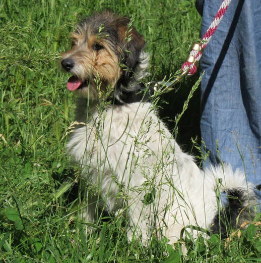 C'est une petite chienne très calme et affectueuse, elle a un bon rappel. Elle ne joue pas encore avec les autres chiens, seul le lapin géant et le chinchilla l'intéressent.