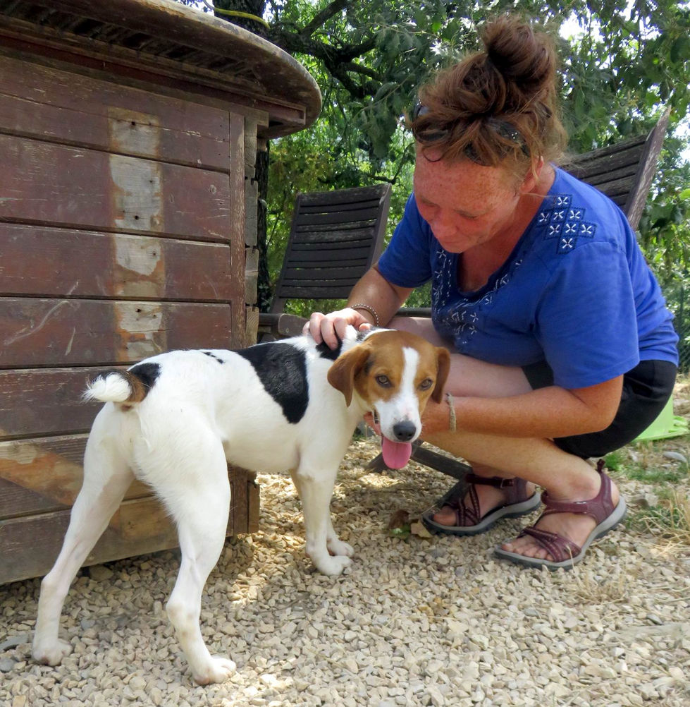 C'est un petit chien très attachant, proche des humains. Un drôle de chien, compromis entre le Beagle et le Jack, ni vraiment l'un ni vraiment l'autre ou alors les deux à la fois! Lulu est un petit modèle, vif et curieux il aime rester tout prés de vous. Voilà un chien qui pourra vous accompagner partout parce qu'il sait aussi se poser, tranquille... Il joue volontiers avec ses deux amies Prunnelle et Canelle, s'installe prés d'elles pour une sieste, mais pas question de partager les croquettes ou les friandises, ça c'est sacré! Lulu est intelligent et réactif, c'est un petit bonhomme vraiment sympa qui apprend vite. Nous ne connaissons pas ses ententes avec les chats, alors dans le doute on va s'abstenir!