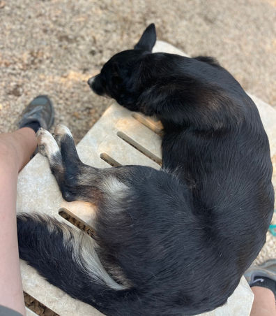 Mouchette est arrivée dans le courant de l'été avec une autre chienne, Dixit, que l'on pensait être sa fille....au final ce serait plutôt l'inverse ou alors elles sont sœurs; issues de portées différentes. Dixit est la plus petite des deux, mais la plus timide aussi. Elle reste en retrait quand Mouchette, elle, se colle tout contre vous. Mouchette c'est la chienne parfaite! Toujours sur vos talons, qui se pose dans un coin tranquillement, sage, à l'écoute, PARFAITE on vous dit!!!! Les deux chiennes sont sont toujours ensemble jamais loin l'une de l'autre. Nous ne les avions pas encore proposées à l'adoption, le temps de les faire identifier, stériliser etc...C'est justement lors de la stérilisation que la vétérinaire nous a expliqué que l'utérus de Dixit indiquait qu'elle avait eu des portées contrairement à celui de Mouchette. Et puis Mouchette est un peu grisonnante sur la truffe ce qui pouvait être trompeur, puisque en effet elle est aussi la plus jeune des deux!