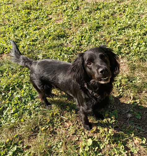 Nesquick est un mélange parfait de Labrador et de Cocker, ce n'est pas un gros gabarit. Voilà un chien que vous pourrez faire suivre partout, d'abord parce qu'il est bien élevé ensuite parce que sa taille moyenne le permet. Il est joueur que ce soit pour courir après un ballon ou s'amuser avec ses copains. En fait c'est encore un chiot. Nesquick s'entend avec les autres chiens, comme avec les chats. Bien entendu il aime les humains petits et grands, il serait même un brin pot de colle. D'ailleurs il n'est jamais loin de vous. Il est intelligent et comprend vite ce que l'on attend de lui mais comme tous les chiens intelligents Nesquick est aussi un tantinet cabot ce qui veut dire qu'il peut lui arriver de n'en faire qu'à sa tête...C'est un compagnon joyeux et sportif qui vous accompagner volontiers en rando mais c'est aussi un poilu qui apprécie le canapé et la chaleur de sa couette. Nesquick connait la vie de famille, il est installé en FA chez Adrian et sa fille avec toute la tribu animaux de la maison! Il s'est rapidement et parfaitement intégré comme il le fera avec, et chez, vous.
