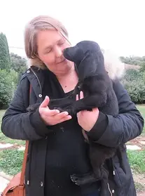 C'est une fratrie de petits mâles qui ne se ressemblent pas, et pourtant...ils sont bien frères! Sans doute des papa différents comme cela arrive souvent. Du coup l'un a plutôt pris du Berger ou du Beauceron avec ses pattes bringées et l'autre du Labrador, alors le vétérinaire a indiqué Labrador, on verra bien en grandissant, on a quelquefois des surprises, souvenez vous de Stella qui avait été enregistrée de type Border Collie! Ils sont adorables, de vraies bouilles d'amour, doux et très câlins. Cathy et Christophe nous avaient contactées pour Snoopy qui était adopté, alors rencontrer un de ses petits frères était comme une évidence. Ils ont tout de suite aimé cette adorable boule de poils! Sa famille vit à la campagne et travaille avec des chevaux alors Snoopy accompagnera Cathy aux écuries tous les jours, enfin quand il sera en âge de pouvoir suivre toute la journée! Une vie de rêve pour un chien : être prés des se maîtres toute la journée et avoir des copains. Le retour en voiture fut un peu long mais il a dormi tout le trajet dans la caisse de transport bien au chaud dans son couffin. Les nouvelles sont bonnes même si l'hiver devrait être plus rude que chez nous! "(...) Je vous écris pour vous donner des nouvelles de Ness. Il s'appelle maintenant comme son frère, nous aimons bien le nom Snoopy. Il s'adapte très bien à la vie en Aveyron mais il a un peu de mal à s'adapter au climat. Les présentations avec le furet se sont bien passés. C'est un chiot très sociable. Nous ne manquerons pas de vous donner des nouvelles.Merci encore pour tout et à bientôt. Cathy et Christophe"