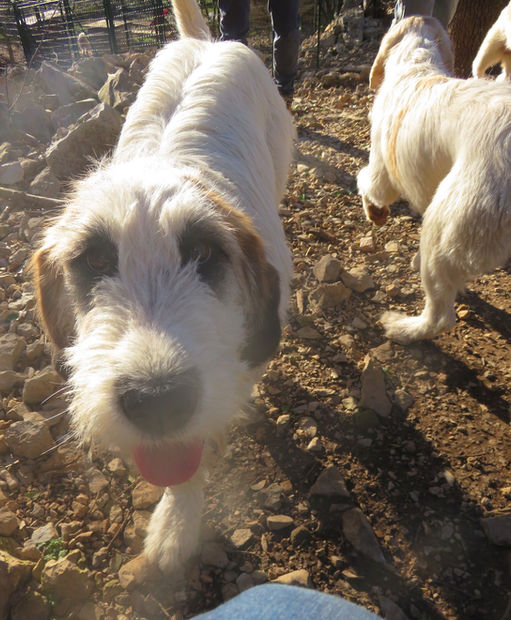 Panda est arrivée chez nous avec ses deux sœurs, Bella qui a été adoptée il y a peu et Daisy qui sera bientôt à l'adoption. Croisement improbable entre une maman Patou et un papa Fauve de Bretagne! Finalement les filles font moins de 25 kg, des chiens moyens et poilus, enfin hirsutes comme on les aime à l'A.P.A.V.H.