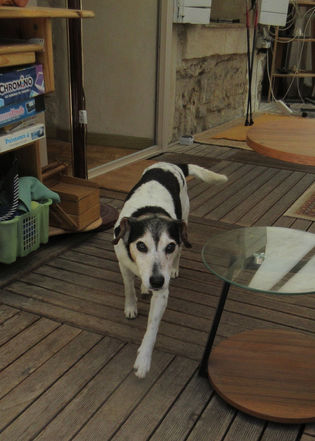 Le vétérinaire l'a enregistré en "croisé", nous on trouve qu'il a du Parson version croisé!!!! Voilà un petit chien attachant qui vous suivra partout surtout sur le canapé ou dans les bras car il aime le contact avec les humains. Il nous a beaucoup fait penser à Cookie que nous saluons.